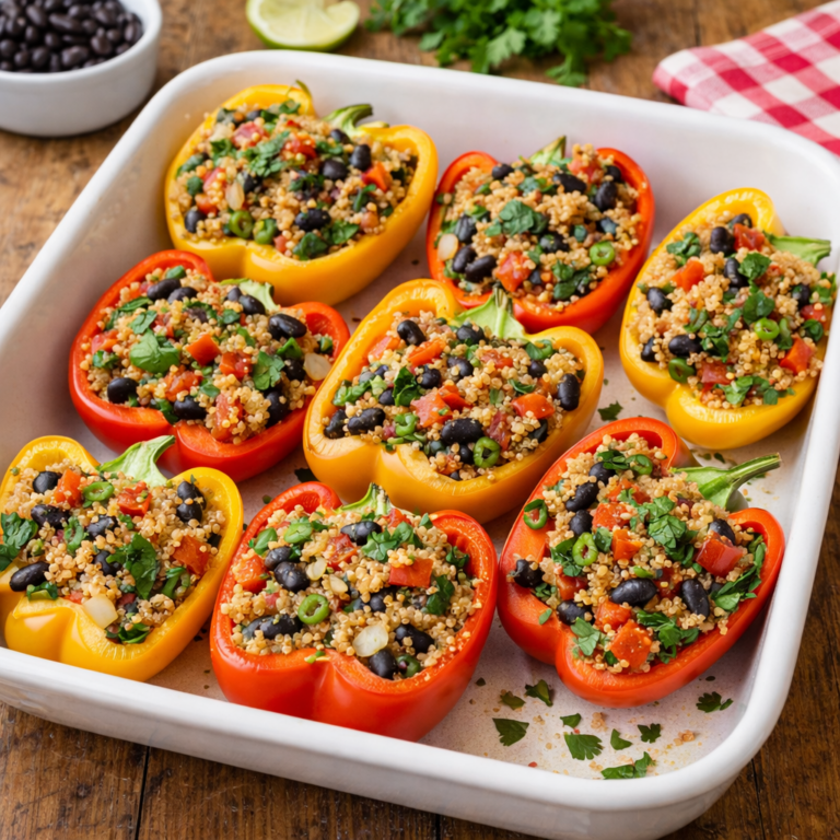 Use a spoon to fill peppers with quinoa stuffing